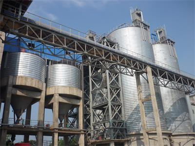 大型稻谷钢板仓的安装过程包括以下步骤: